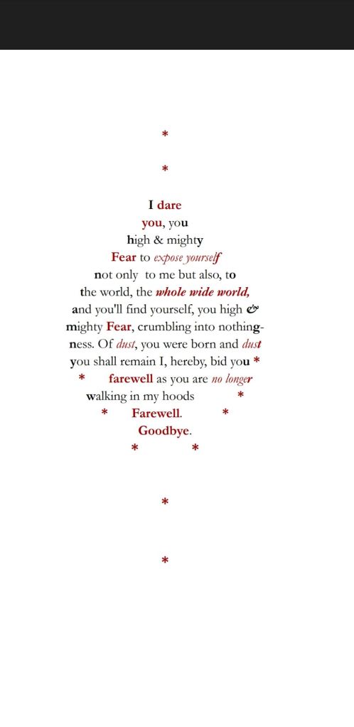 Fearing. Me. How about that? You will never have the power or control